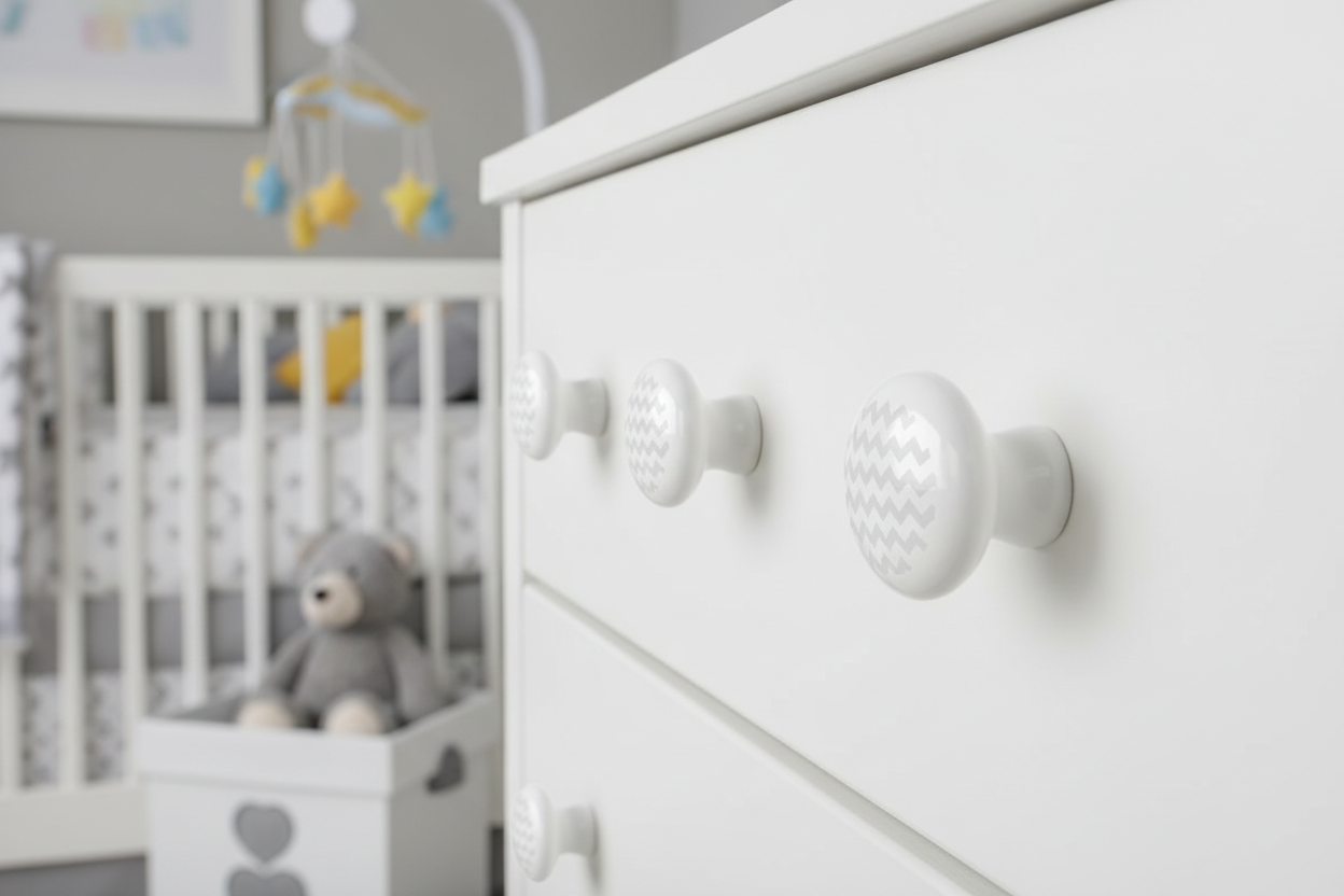 Light Grey Chevron Print Drawer Knobs/Ceramic Cabinet Pulls Gray Chevrons Nursery Decor (Set of Two)