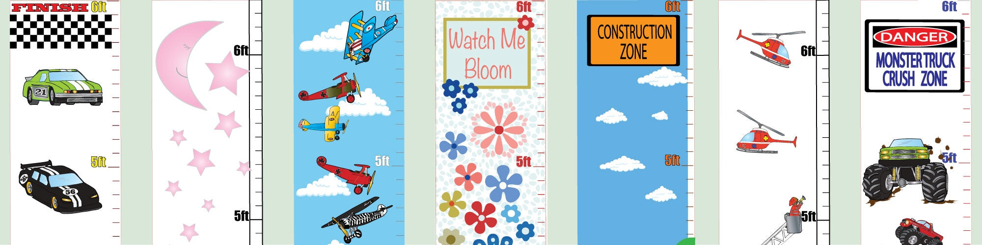 Track your child’s height with our peel-and-stick growth charts, designed to bring color, character, and charm to any nursery, playroom, or bedroom wall. Each chart is removable, repositionable, and made from premium vinyl that applies cleanly without damaging your walls.