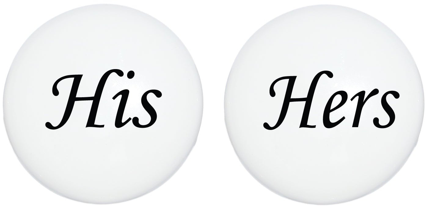 These His and Hers Ceramic Drawer Knobs add a perfect designer touch for Just Married Newly Weds to use in Decorating their Bedroom dresser drawer pulls, nightstand, Armoire cabinet, furniture knobs, bathroom and just about anything you can think of that needs a drawer knob or handle to pull it open. They make a thought wedding gift for newly married couples.
